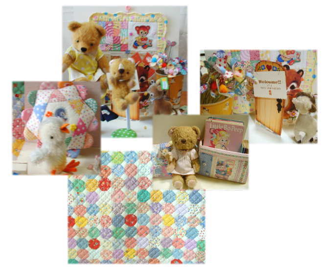 | そしてそして、、、 展示をとっても可愛くしてくれているとっても素敵なキルトやお花、ミニクッション♪♪♪ emoのために素敵な作品をつくってくださった大切なお友達たちがいます。 |