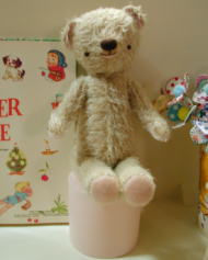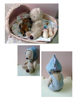 こんにちは♪ 身長 33センチ 体重 425g のこの子は こねてこねて(笑)ちょっとアンティークな感じに仕上げました。 おうちにあったビンテージの可愛い水玉ドットのドールドレスがあまりにもぴったりでおしゃまなお出かけ気分♪ でも、お洋服をぬぐと男の子とも女の子とも中性的になるのも、ベアの魅力ですね。。 |