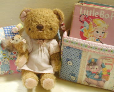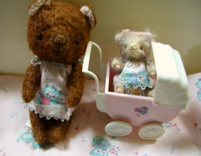 *ミニネコ「キキ」とベアの「ルル」 (ベビーカー付き) ミニネコ「キキ」 身長8センチ・体重30g ベア「ルル」 身長16センチ・体重150g ビンテージの大好きな可愛い猫ちゃん生地があったので いつか、こんなこをおそろいでつくってあげたいな♪と誕生した子たちです。 ベアもお耳をたてて猫ちゃんみたい(^^ ←猫ちゃん♪ちっちゃい肉球つき 猫ちゃんの肉球ってたまりません♪ |